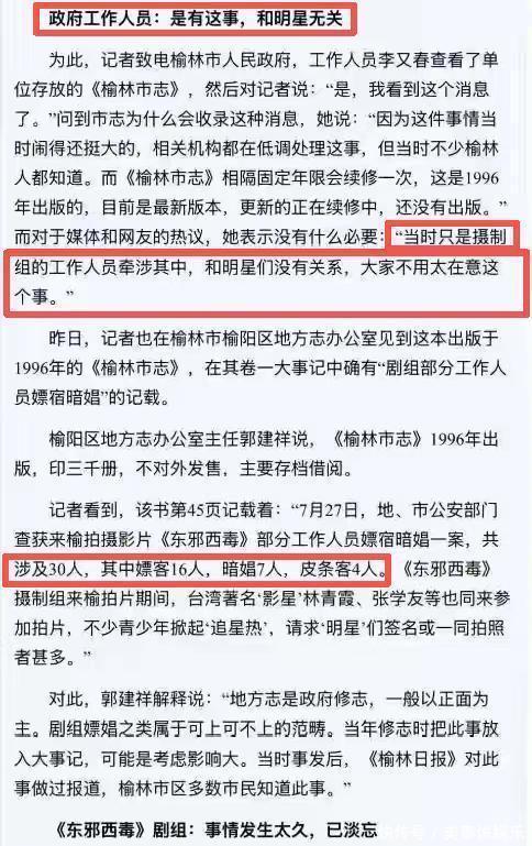 跟着播送的表示,王家卫的真面庞也露了出来,之前被揭露的阴雨面再也藏不住。其实早在1994年,王家卫带着剧组在榆林市拍戏的时期,就传出过集体嫖娼的事,传奇有16个东谈主傍边,闹得挺大,但被压下来没让东谈主知谈。