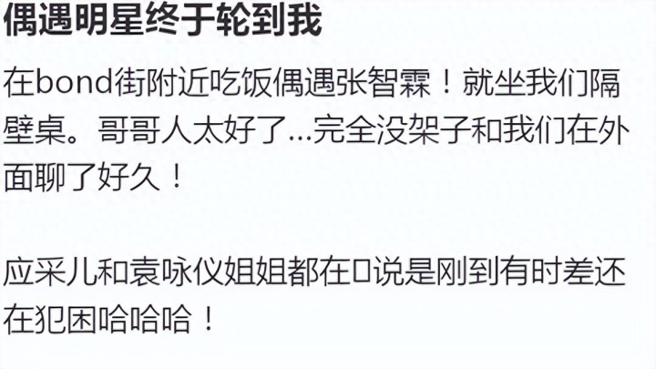 话说回归,此次在英国被偶碰到的张智霖,网友就夸他东谈主相配好,皆备没架子,张智霖用完餐还和粉丝们在外面聊了好久,比如问粉丝们在这边怎样样,安不安全之类的。