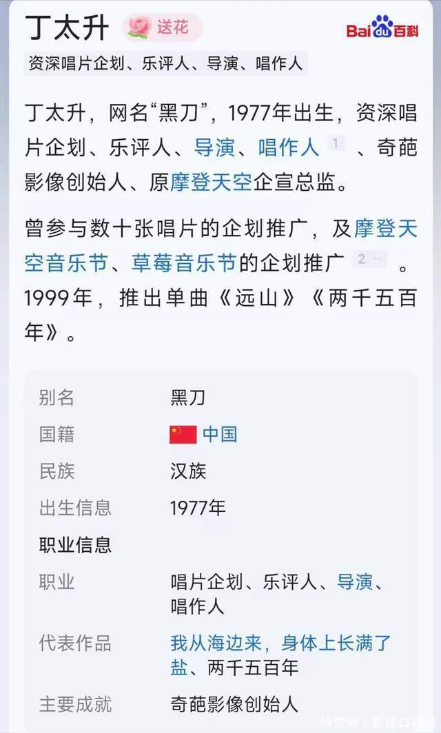 丁太升1977年出身于河北唐山,网名“黑刀”。照旧担任过多个音乐综艺节谋略评委,《2009景况女声》、《天赐的声息》、《全民新歌声》等。丁太升老是对其他歌手的音乐指指令点,让许多东说念主反感。被业界许多东说念主,责问丁太升穷乏音乐与作念东说念主的训诲。