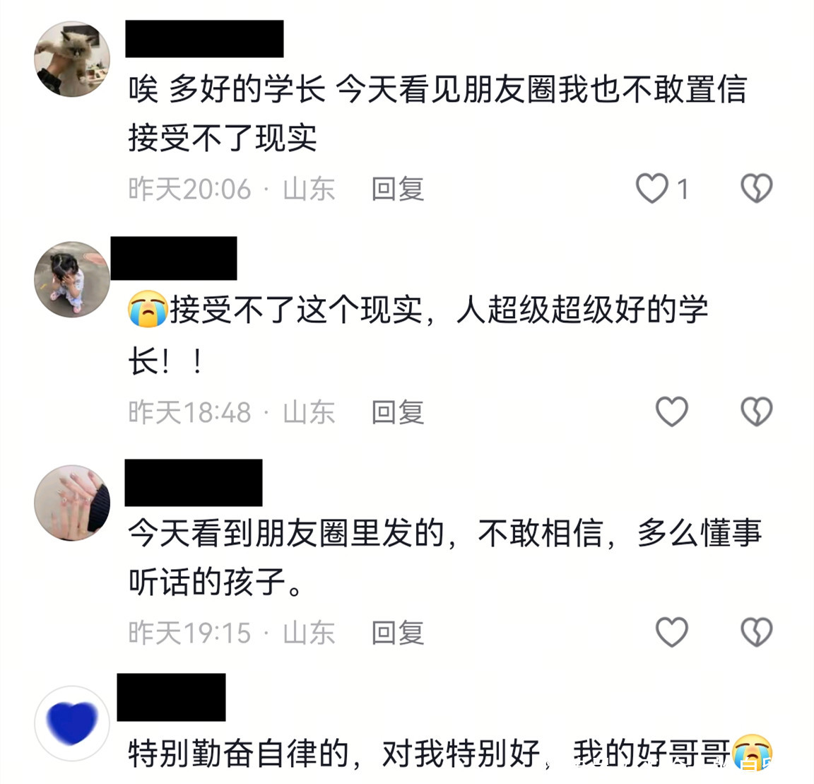 另一位一又友则悼念说“咱们会永远怀念你,愿你在辽远祯祥健康,振作风物,永远是阿谁阳光而又充满活力的芳华男大。”