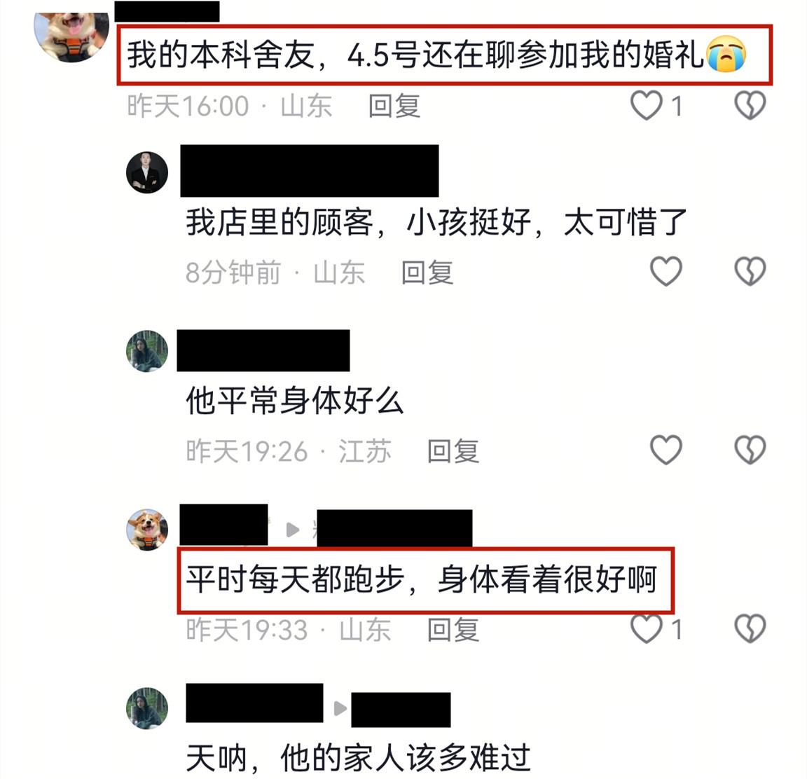姜太管的大学同学说,4月5号他们还聊天,姜太管还说投入他的婚典。没思到只是一天工夫,就天东谈主永隔了。
