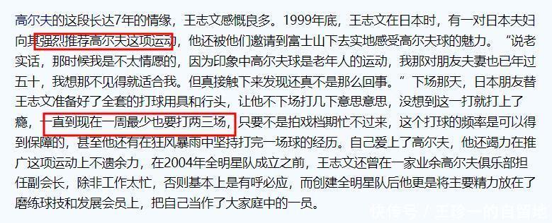 王志文曾说,淌若不拍戏,他一周能保握打高尔夫球两三次的频率。