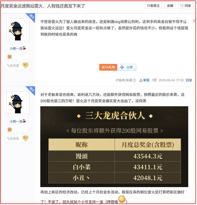 8月3日,首批结伙东谈主月奖披发,1000万东谈主民币的奖金池让数万玩家获益。零付费玩家能拿到一两百元,顶级玩家则斩获十万元奖金及网易股票激勉。此举以赤忱、边界和隐讳范围,创下MMO行业记录。