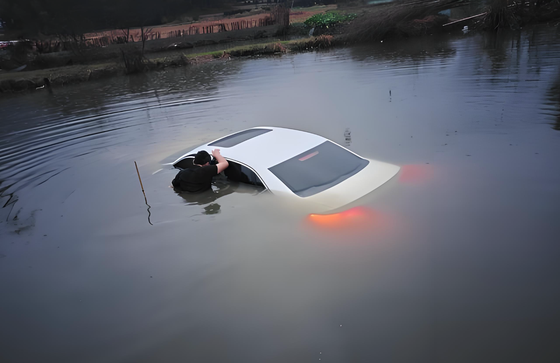然后在第二天对车辆进行打捞的时候,发现车辆的车窗王人在怒放状况,车门也王人在解锁状况,有的视频还说,车辆打捞出来的时候,双闪还在闪,这小数咱们执怀疑作风,不至于泡了通宵之后,车辆小电瓶和备用电板的电量还莫得耗光吧。