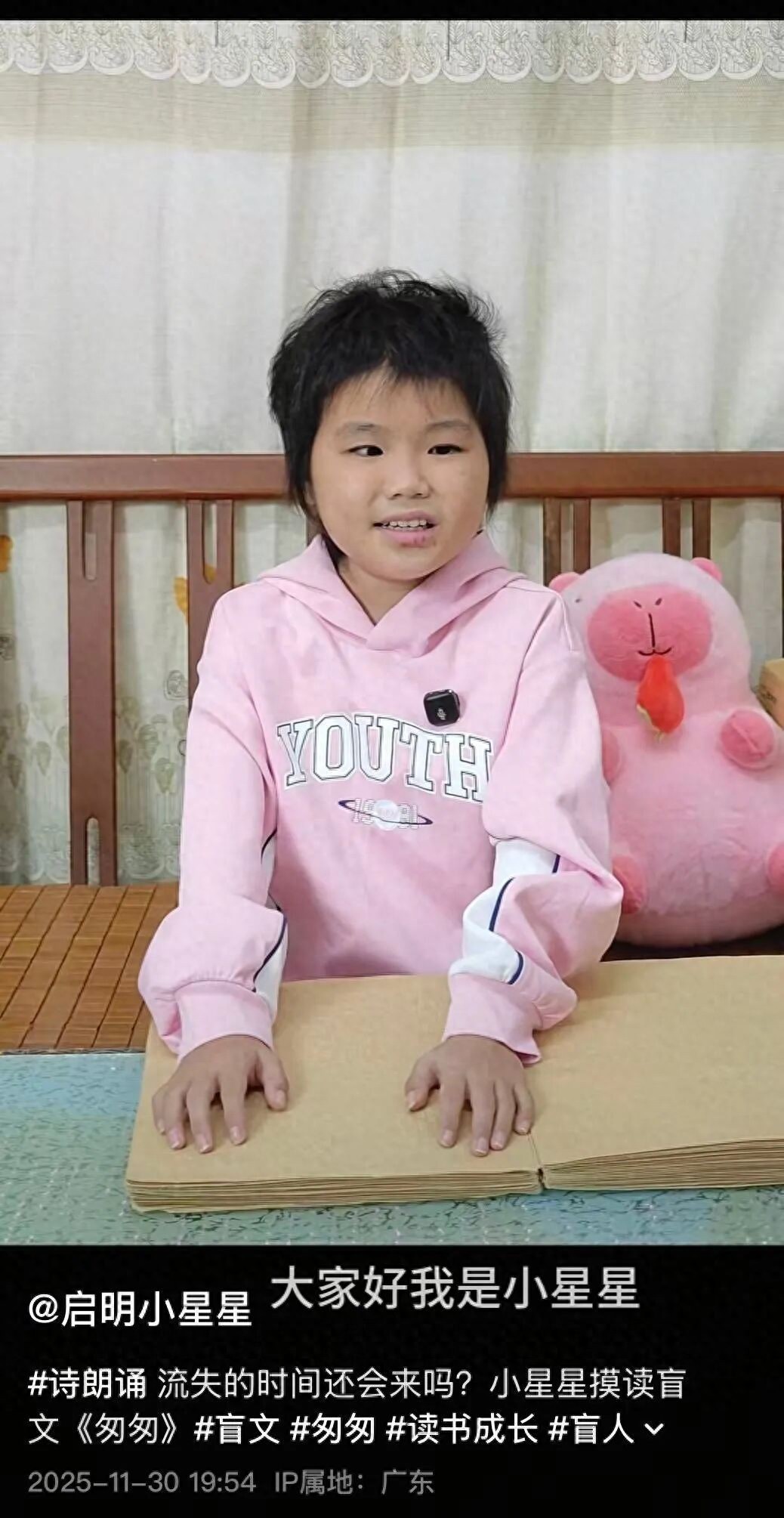 盲童女孩摸读课文。图/酬酢平台截图盲童女孩星星的母亲周女士告诉九派新闻,星星是先天性视网膜流弊,从确立就看不见这个寰宇,因此声息成了她战斗寰宇的进击序言,“我男儿眼睛看不见,幼儿园不收她,我就天天给她读故事听云开体育,她听完我方也可爱讲,其后她六岁去了疏淡学校念书,插足学校的讲故事比赛拿了一等奖,丰足认为她声息动听,叫她去插足市里的‘小小朗读者’比赛,得了一等奖。”“小小朗读者”的比赛上,星星和主张以前的孩子们同台竞技,仍获取高度详情,周女士深入意志到星星在朗读方面的禀赋,“孩子很可爱读故事,我也认为她有这个能力,是以但愿能帮她记载下来,2020年后我运转把她读课文的视频发到酬酢平台上,没念念到不测成绩了一些粉丝。”2022年,星星和周女士均被查出尿毒症,记载星星讲故事的账号也因此停更了很永劫分。反抗病魔的历程中星星饱受煎熬,瘦到30多斤,频繁透析让她失去了念书的精神。2024年到2025年间,她连续作念完肝肾移植手术,讲故事的账号才运转复更。“孩子一直是乐不雅的,从来不认为我方糟糕,老是特出果断,致使还不时跟咱们争辩,说她看不见比咱们看得见还要好。”周女士说,我方有两个孩子,星星的哥哥是健康的,但星星不仅先天失明还体弱多病。即便如斯,星星的作风也永恒积极朝上。因为可爱看书,可爱讲明,星星不时插足市里的朗读比赛,千山万壑的奖项拿了很多,周女士念念过让她走播音主握的谈路,但一方面记念星星的体魄情况不踏实,一方面又受困于专科学习的昂贵膏火,“孩子这种情况我宽心不下,从她确立起我就没上过班,她上学我齐是陪读的,其后我搜检出尿毒症就更没主见上班了,家里的劳能源独一我丈夫,经济要求一般的。”星星作念完肝肾移植手术康复后,周女士就一直用星星用的机器作念透析,她说我方也酌量过手术,但手术的花销依然个问题,“我有念念过用星星念书的账号作念自媒体,但到刻下也没实名认证,没靠这个赚过钱,毕竟发视频的初志是但愿通过记载的神志让孩子坚握我方的爱好。”记者:秦欢然
