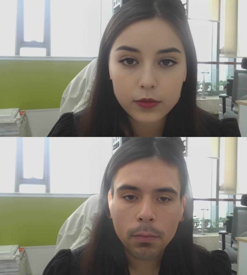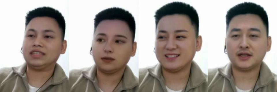 直播历程中,记者将脸部形象先后换成年青女性、络腮胡男后生、番邦男性、番邦女性等多种形象,画面切换运动,直播画面无任何AI生成象征。