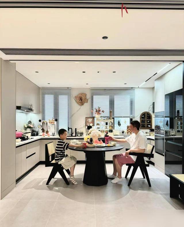 悬空电视柜清扫起来一拖就干净,洞开式厨房配圆形餐桌,不占场所又拉近家东说念主距离,吃饭唠嗑皆便捷。