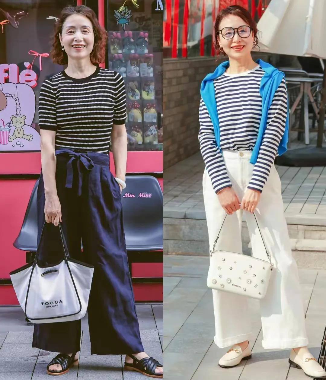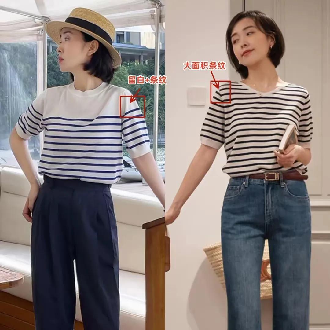条纹的针织短袖上衣大约是长袖齐稳健咫尺的夏令穿搭,同期也很稳健我们平常各人女性,中年女性以致是00后的好意思仙女,穿在身上齐不会有任何违和感,不挑东谈主,不挑肤色,不挑年岁,