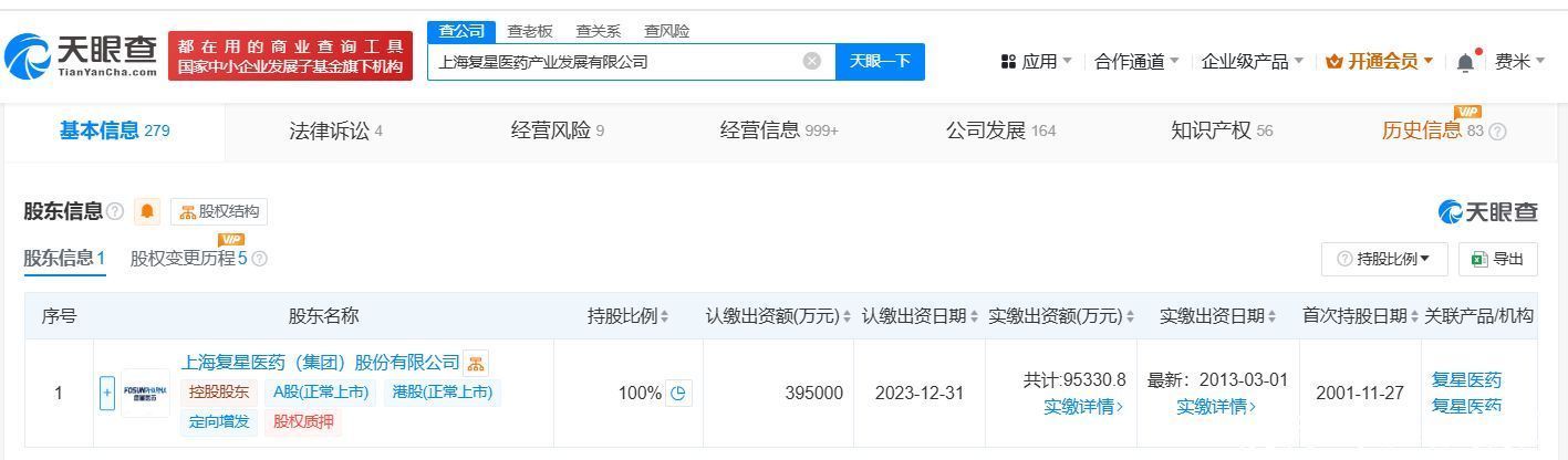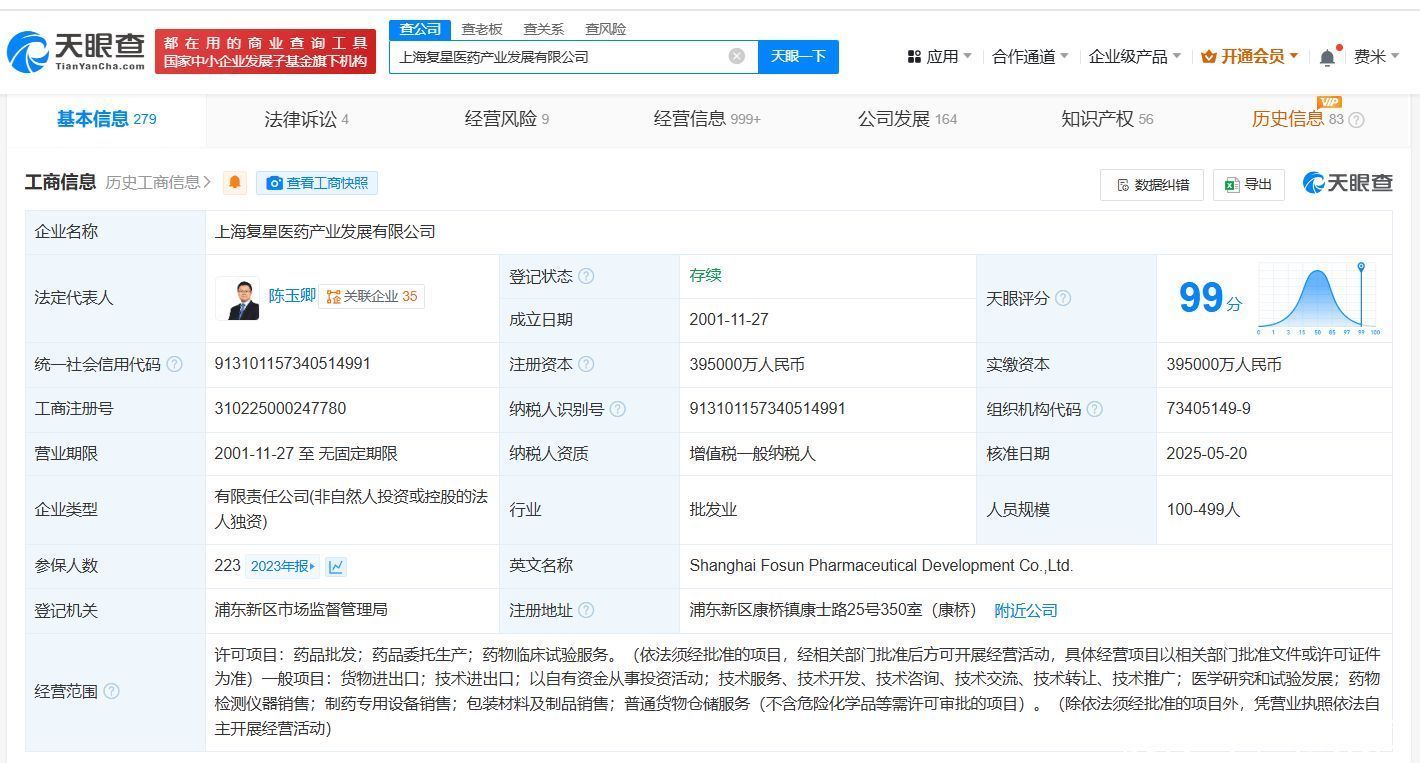 上海复星医药产业发展有限公司拓荒于2001年11月,注册成本39.5亿东谈主民币,方案限度包括药品批发、药品交付坐褥、药物临床磨砺作事等,由上海复星医药(集团)股份有限公司全资合手股。